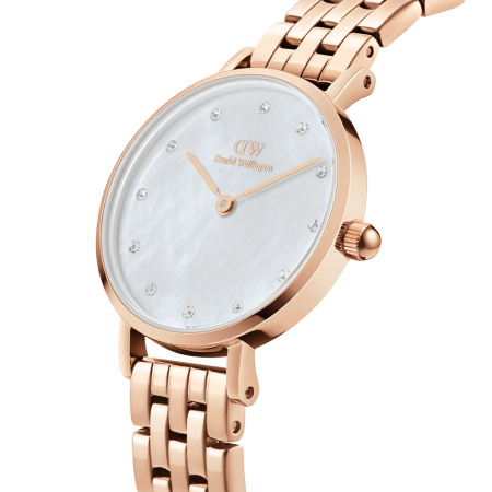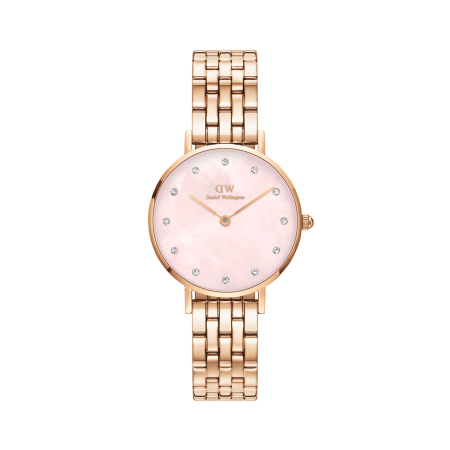 $269.00The Petite Lumine 5-Link Melrose has a name fit for royalty and for a good reason. First, consider its credentials: this watch is crafted from gold-plated 316L stainless steel, with a dial made from mother of pearl, which makes every watch unique. It’s also adorned with high-quality crystals. Second, the…