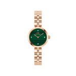 The first crossover between our jewelry and watch collections, Elan Lumine shares the same delicate silhouette and logo design details as its namesake pieces. Features a rose gold 3-link strap and crystals dotting the real malachite dial. Malachite is a natural stone, so there will be variances in texture on each dial—yours will be truly unique.