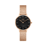 The Petite Lumine Pressed Piano displays maximum glamor in the minimum of space. Glistening crystals illuminate the iridescent black dial, with a unique pattern designed by nature itself. Available in three luxurious colors, the new Studio strap, with a pressed mesh pattern, matches the other elements in style and complexity.