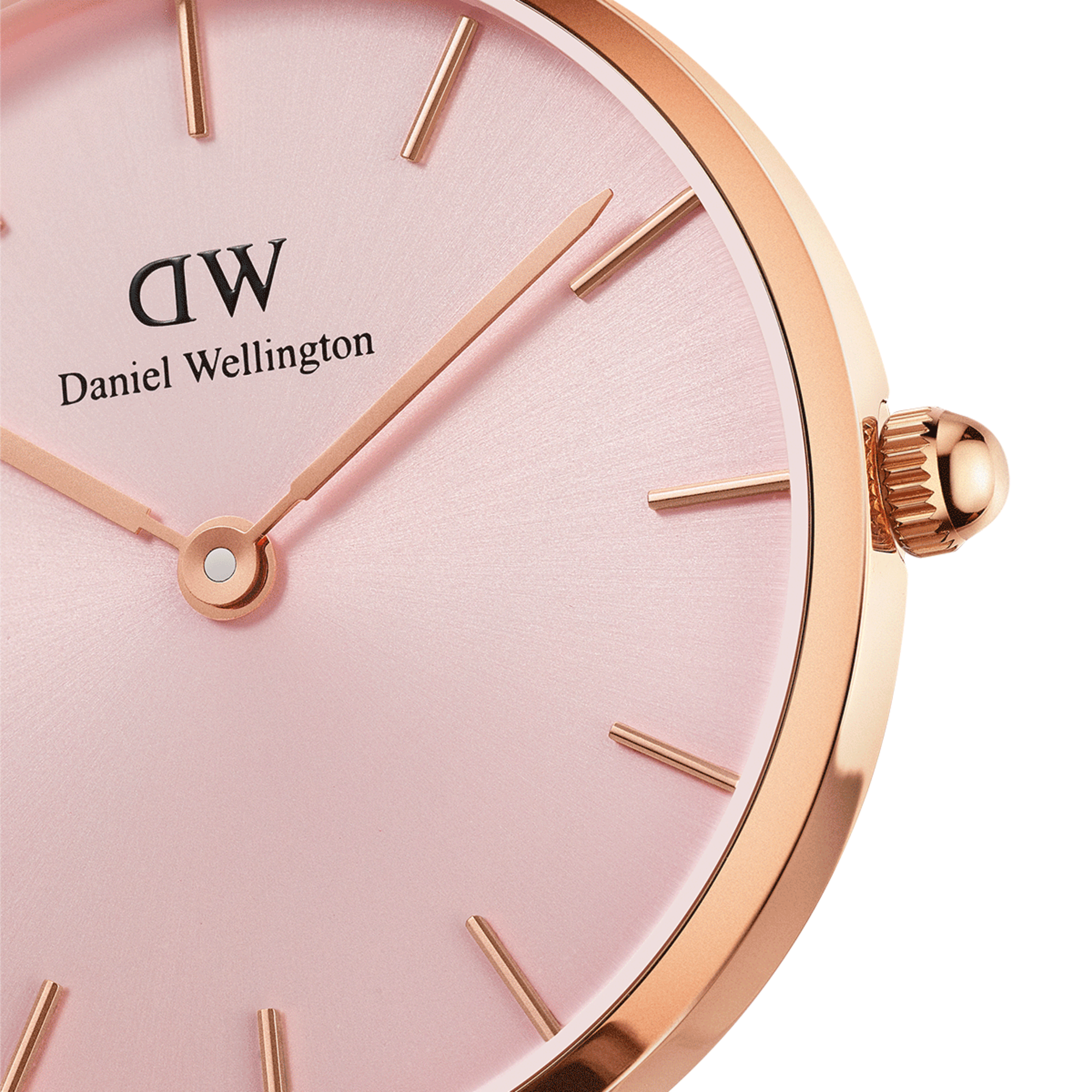 CLASSIC AND CHIC. Petite Melrose Light Pink features a charming light pink dial and an undeniably elegant rose gold mesh strap. This watch elevates your everyday outfit, your mood and your spirit.