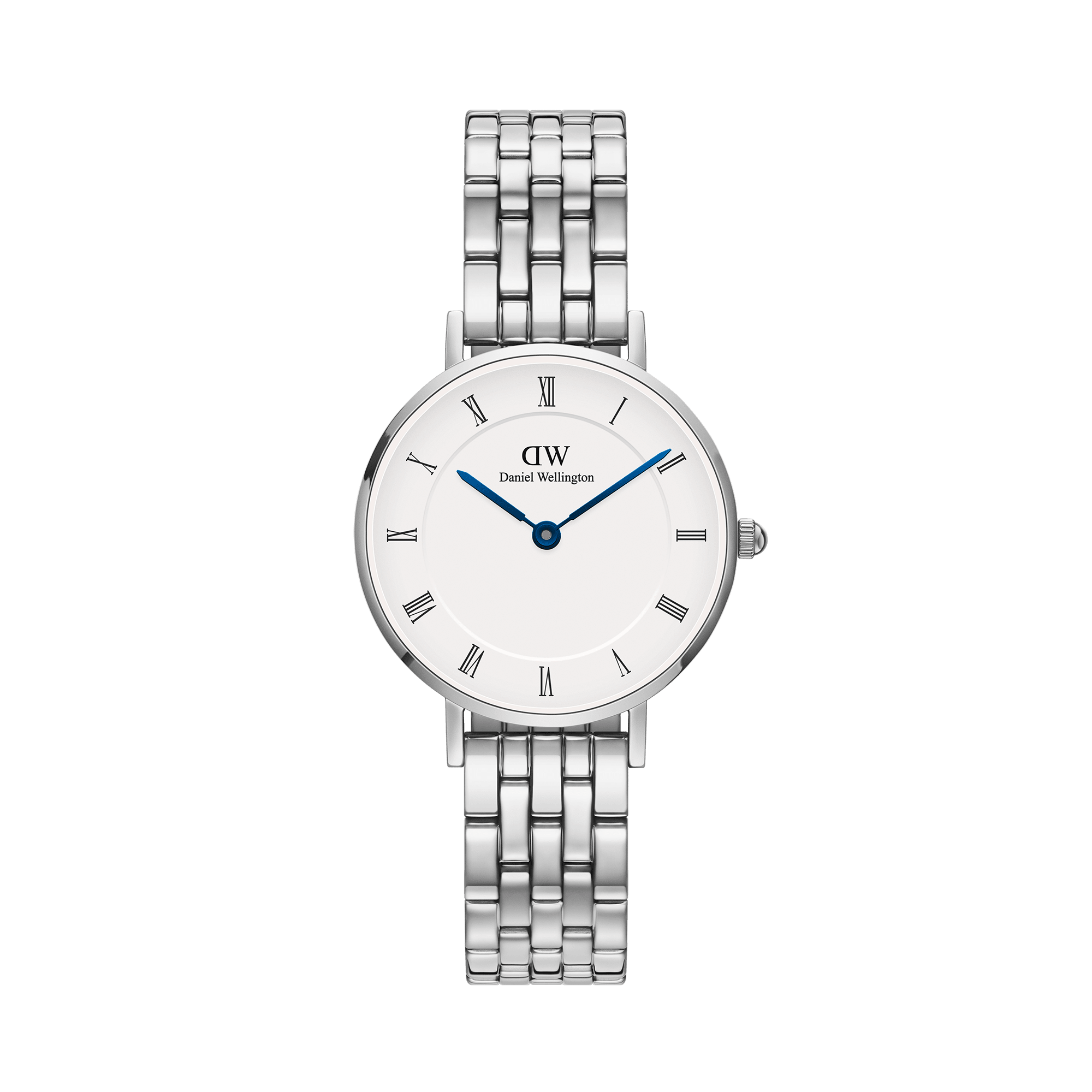 With vintage-inspired design details—like the Roman numeral dial and blue steel hands—this version of our Petite watch strikes just the right balance between old-school and trending now. Features an interchangeable 5-link strap in silver.