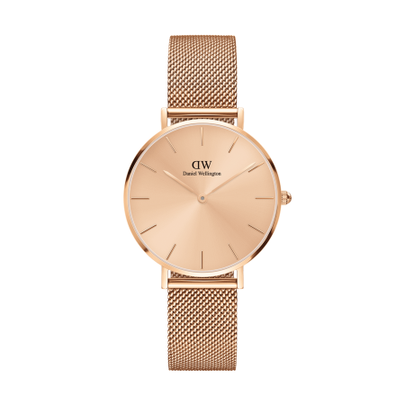The Petite Unitone features a seamlessly matching rose gold mesh strap and watch dial. Crafted with polished stainless steel, designed to make a delicate yet eye-catching statement. A timepiece that sets the tone for any occasion.
