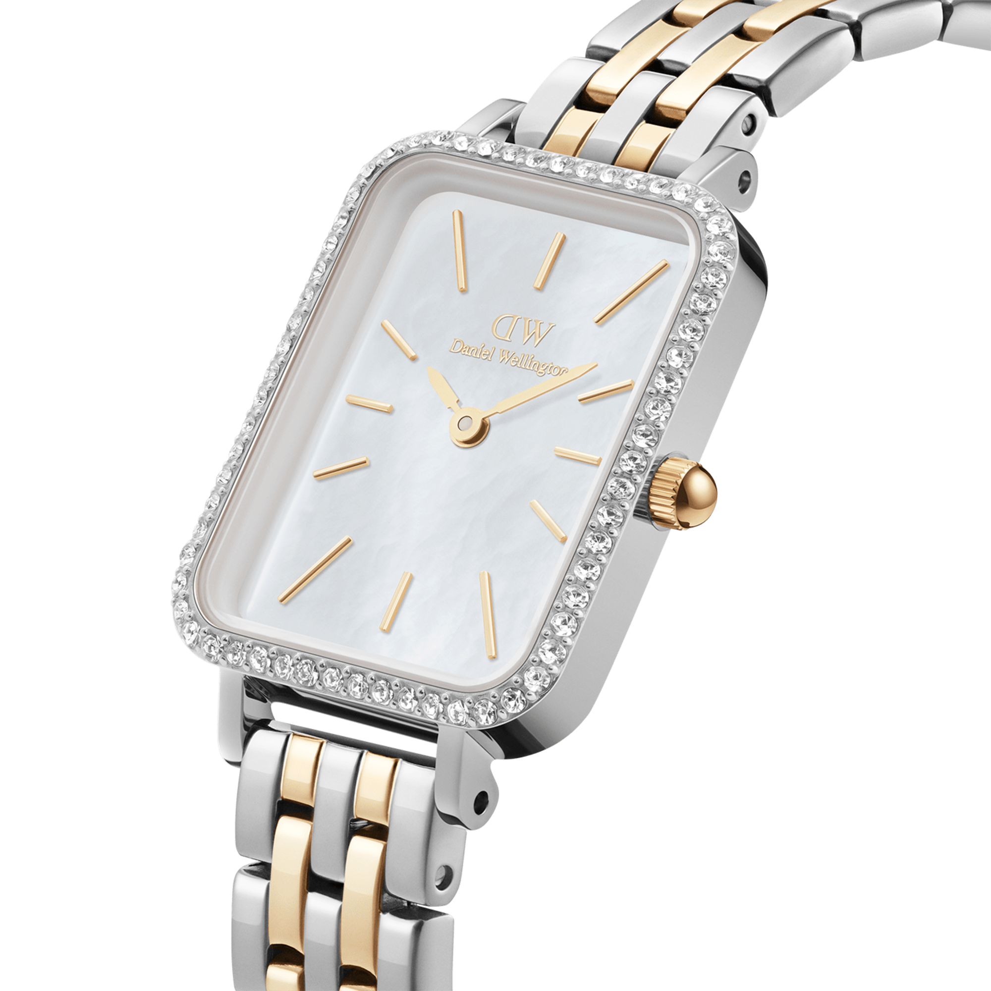 The Quadro is our first square dial timepiece. Crafted with polished stainless steel and available in a refined rose gold plating or vibrant silver finish. Choose between the option of a white, black, or green patterned dial and a selection of pressed mesh or pressed leather straps. Elevate your look…
