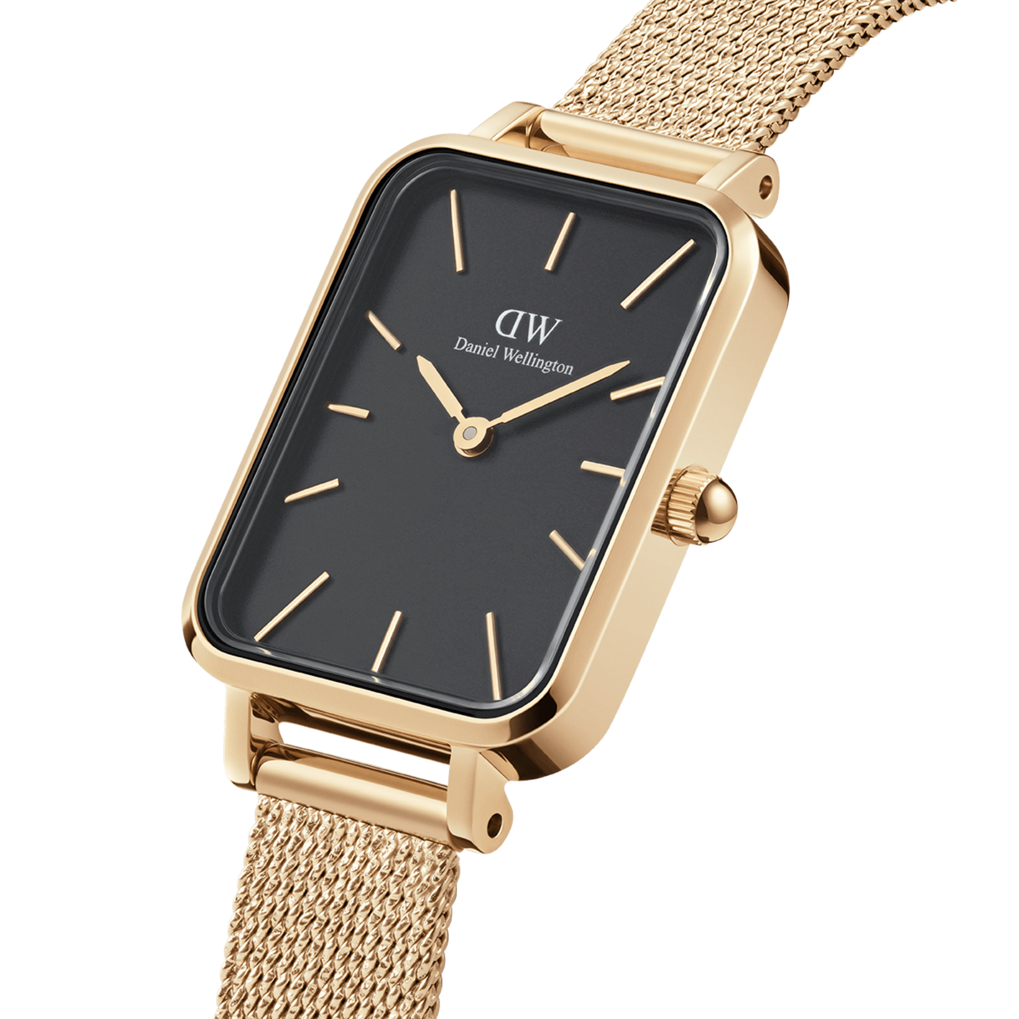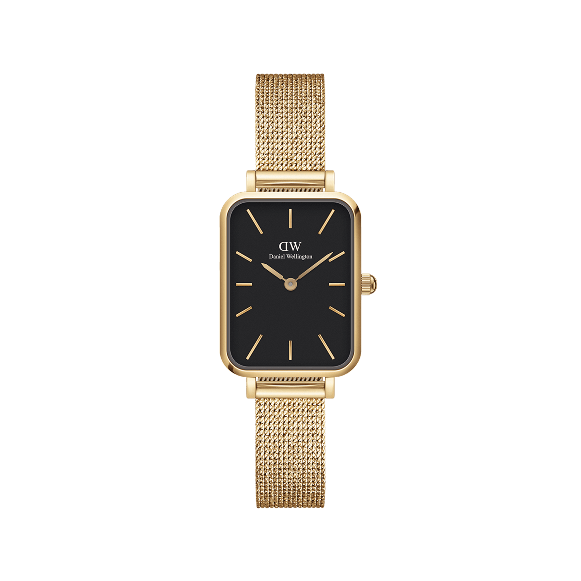 Edges can be very feminine. The Pressed Evergold Black brings it to life perfectly. This gold women’s watch with a square dial looks both delicate and bold thanks to its black watch face. The gold mesh bracelet, crafted from stainless steel with a gold finish, adds a glistening fabric-like texture to this timepiece for a complex wearing experience. So, when your look needs just a nudge to get out of the conventional, choose one of our square women’s watches. Small gold women’s watch with a gold mesh watch band and square dial in black.