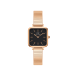 The Quadro Studio features a delicate and petite, black square dial, complemented by the sleek Piano strap. Crafted with polished stainless steel and available in a refined rose gold plating. A retro statement with timeless appeal.