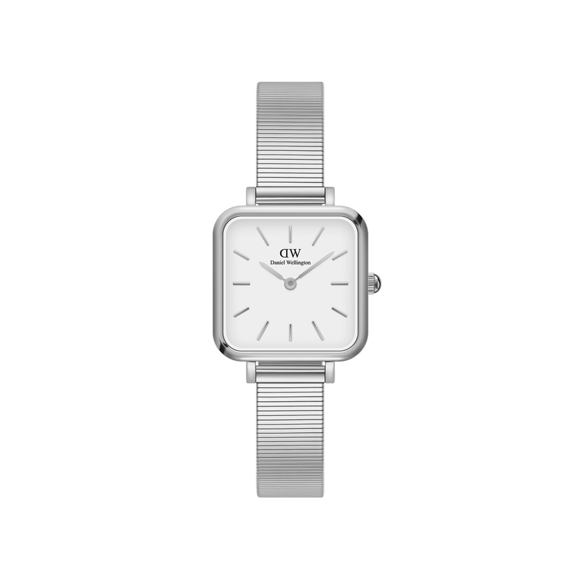 The Quadro Studio features a delicate and petite, white square dial, complemented by the sleek Piano strap. Crafted with polished stainless steel and available in a vibrant silver finish. A retro statement with timeless appeal.